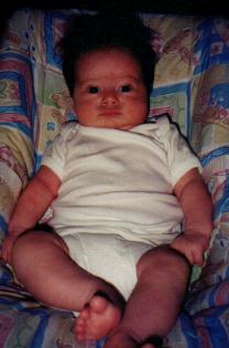 Esta fotografía de la derecha es la más chistosa que tengo hasta la fecha. Nótese que traté de salir seria, pero salí más seria en la foto para mi pasaporte. ¡Debo aclarar que el pelo es herencia de mi papito! ¡Ay papá! ¡Pobre de mi! A ver como me crece... |